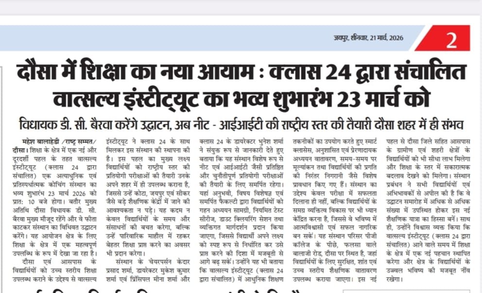 Vatsalya School Dausa provides quality education, experienced faculty, modern facilities, and holistic development, admissions open, contact for details and guidance today.